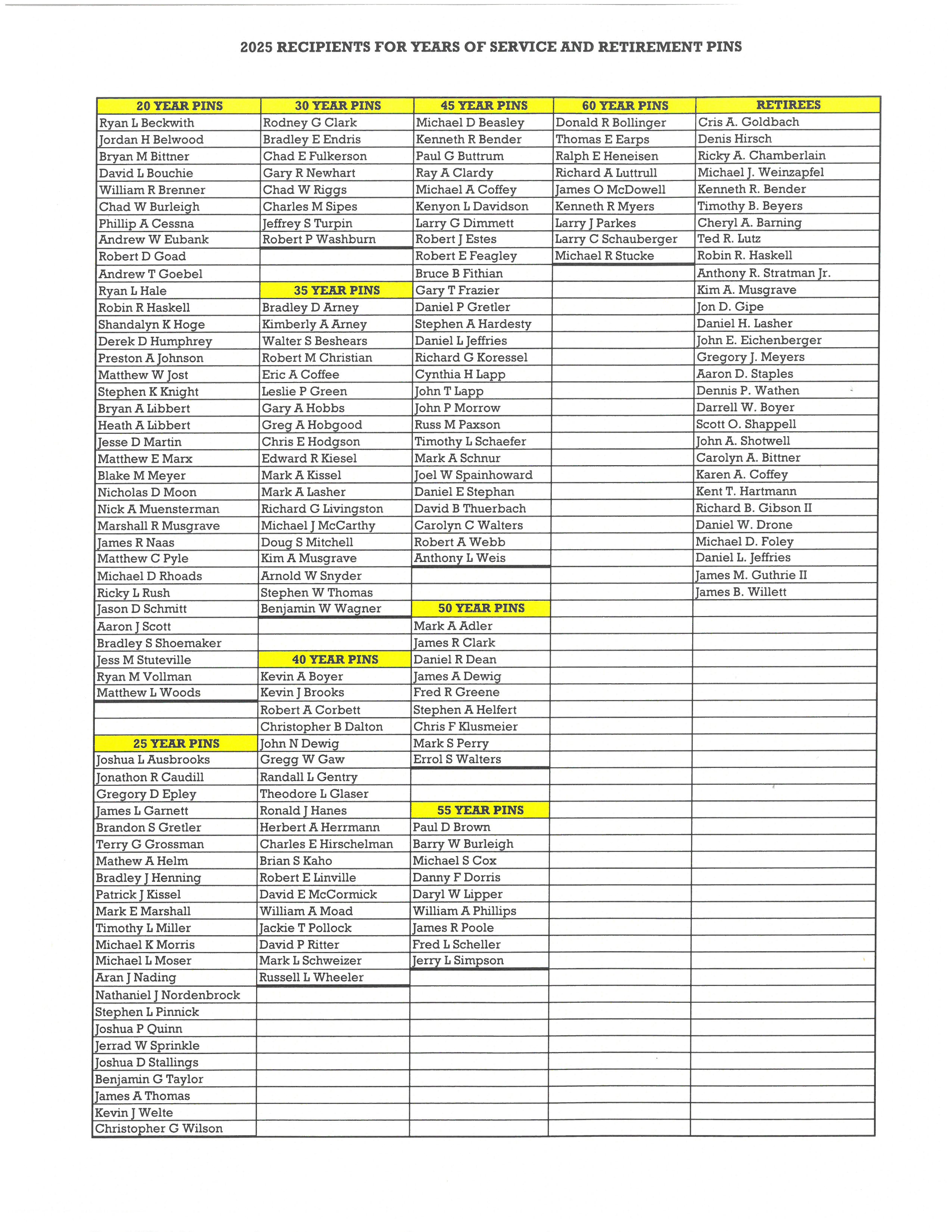 2025 Retiree Lunch